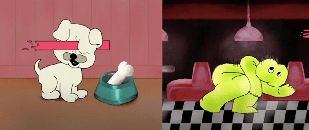 背景靈感來自哆啦A夢進入時光機的畫面,左下的角色代表大雄(其實是用「美」這個字設計的角色),右邊的橘色和噴漆線條配色代表胖虎,這兩個角色加上哆啦A夢,用來隱喻霸凌者和被霸凌者的關係,雖然大雄常被欺負,但自身不努力,反而利用哆啦A夢的神奇道具反欺負回去,彷彿在鼓勵大家被霸凌後要依賴更厲害的人或關係反擊,這樣的關係好像一種奇怪的平衡,所以代表哆啦A夢紅鼻子的部分有像濺血的感覺。 另外,時光機和任意門,就是所有人的夢,翻成中文的哆啦A夢 也是一個夢。
