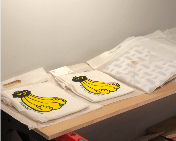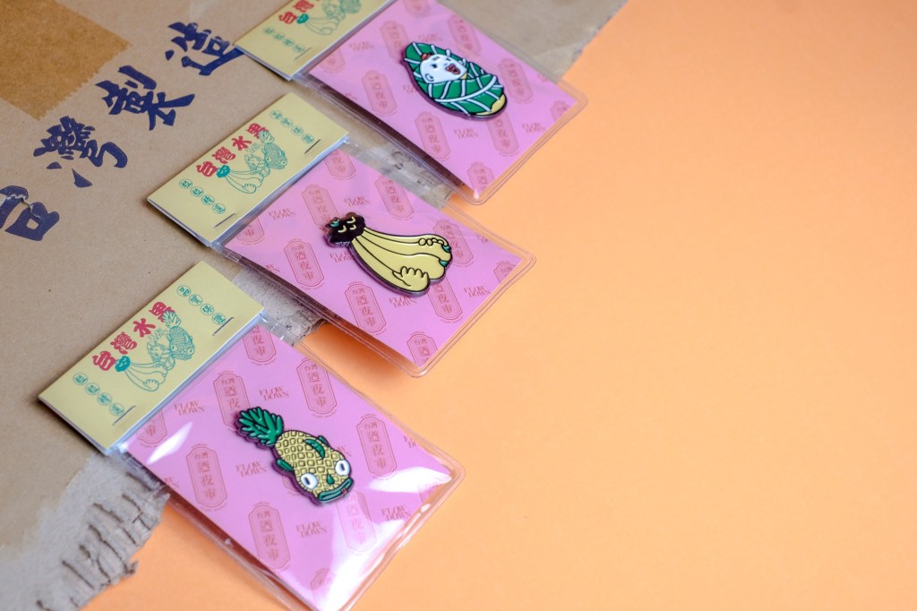 活動期間在展場內有販賣出展藝術家的周邊商品 (明信片,口罩,T-Shirt) 以及台灣文化相關的小物,如包包跟筆記本。