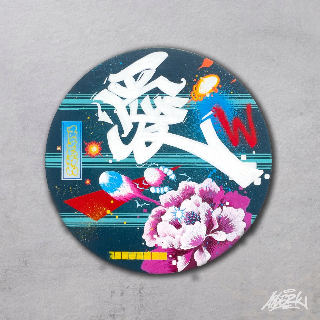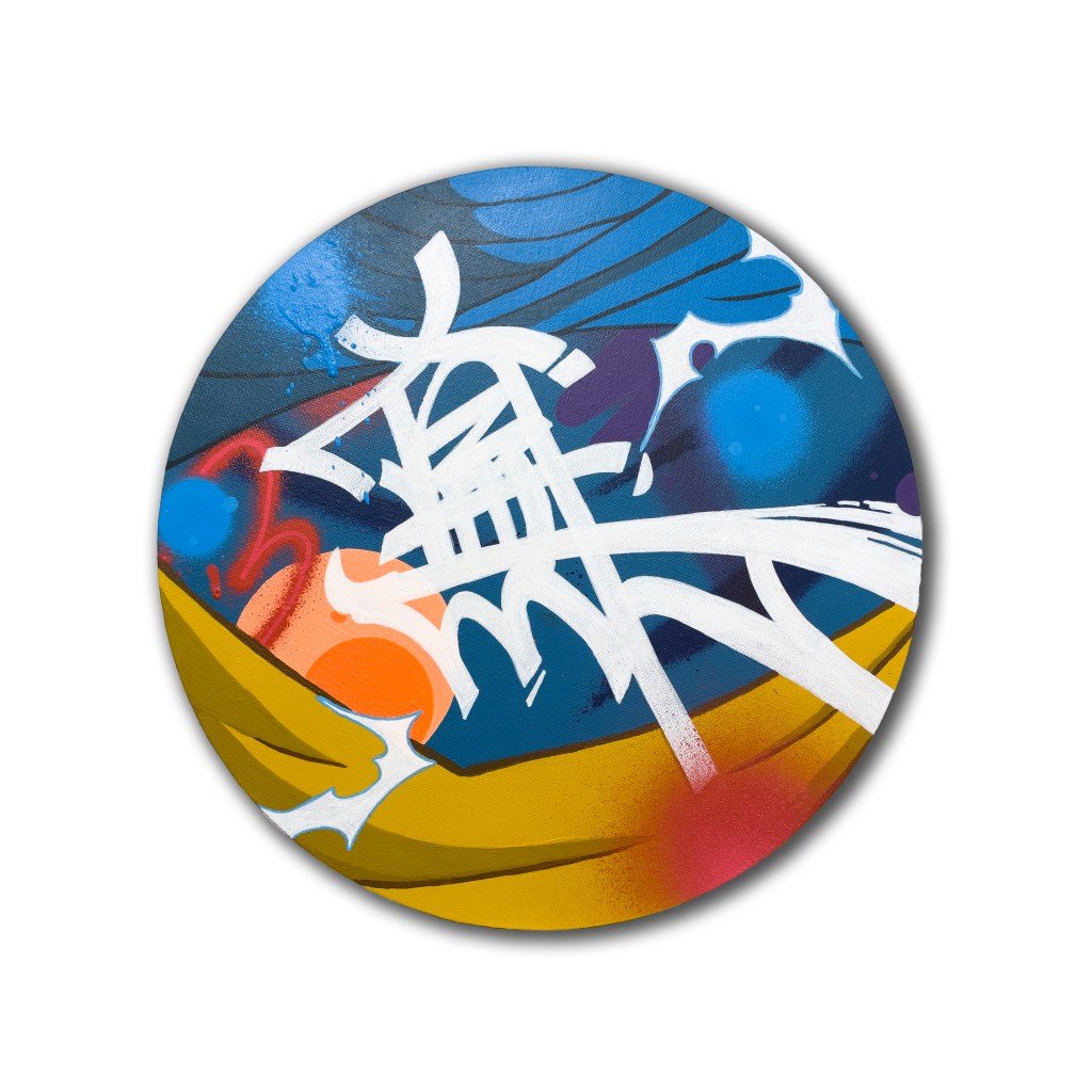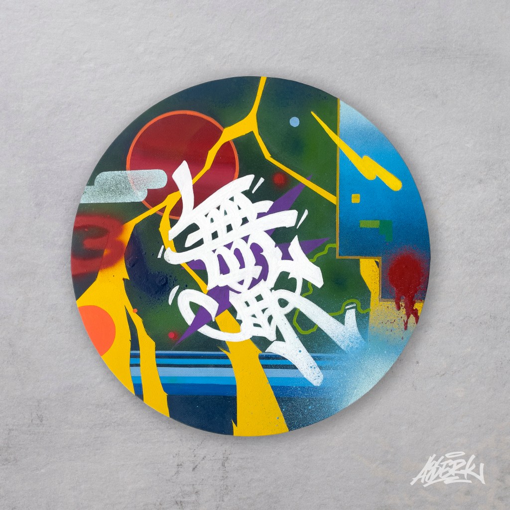 無敵 (Invincible) by ASERK:30cm Round Canvas |Arcrylic paint, Spray paint